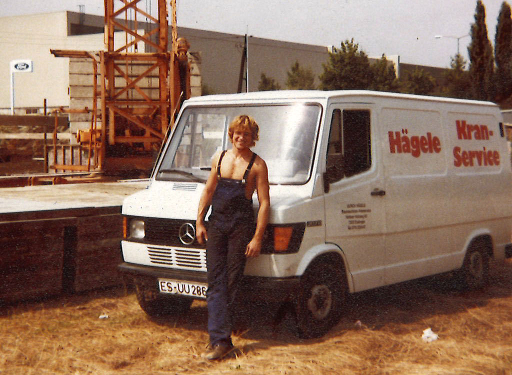 Gründung einer Ein-Mann-Firma in Esslingen durch Ulrich Hägele. Die Firma ist spezialisiert auf Reparatur und Montage von Kränen von Baufirmen. Diese erledigt Ulrich Hägele persönlich mit seinem einzigen Montagebus. Aufträge, meist aus dem Großraum Esslingen, werden per Telefon in einem Büro im Wohnhaus angenommen.