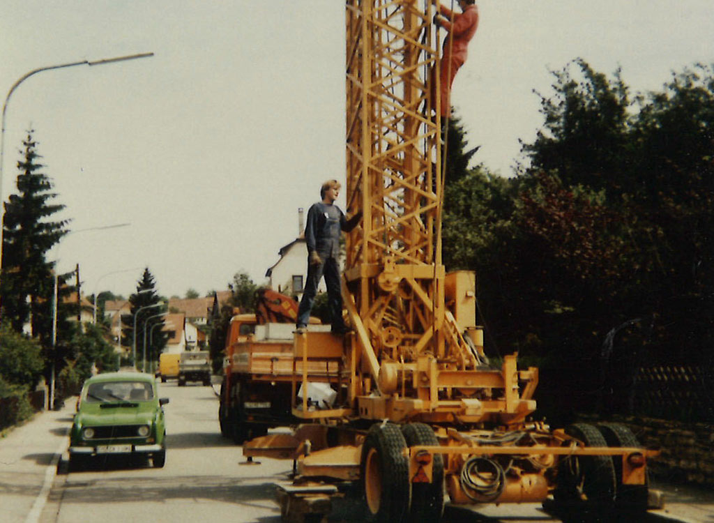 Bereits ein Jahr nach der Firmengründung ist die Anzahl an Aufträgen durch Baufirmen so groß, dass Ulrich Hägele einen Mitarbeiter einstellt und einen LKW mit Ladekran in seinen Fuhrpark kauft, um auch Krantransporte durchführen zu können.
