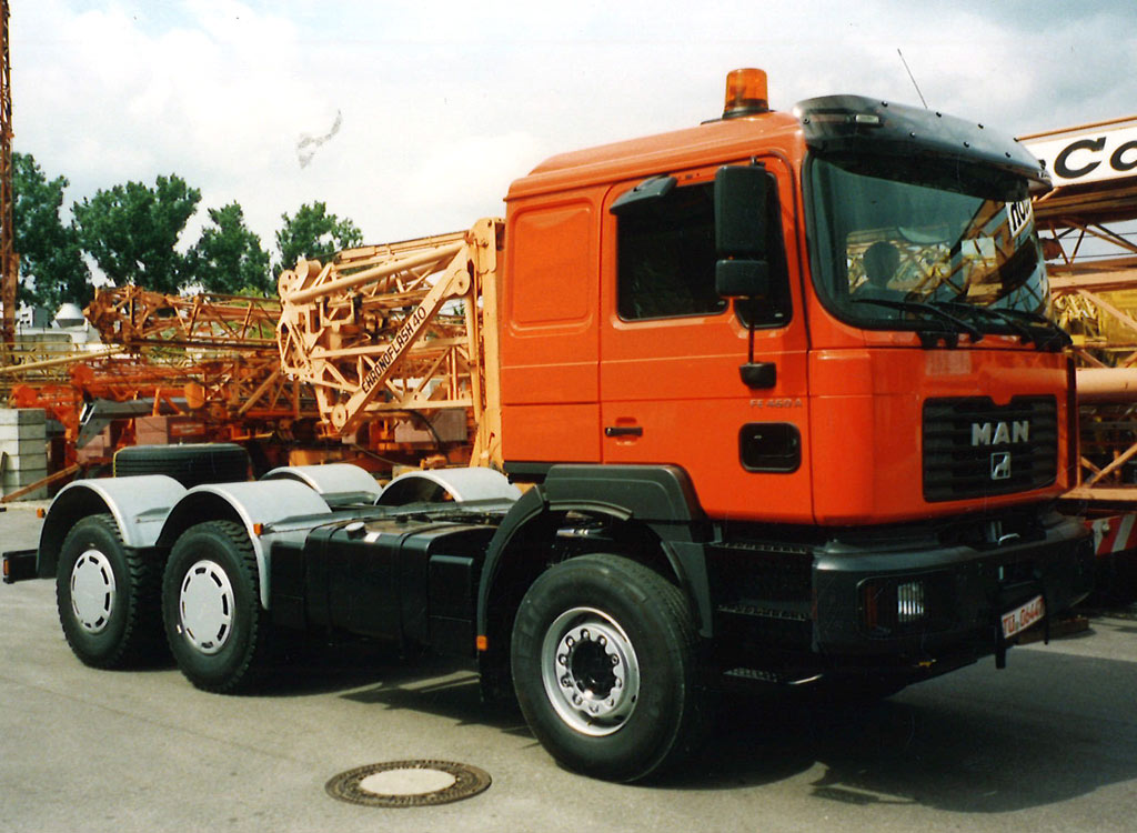 Erwerb eines neuen MAN-LKW. Der Fuhrpark wächst weiter, genau wie der Mietpark. Dieser erreicht 2005 eine Größe von 45 Mietkränen. In der Firmenhalle in Oberboihingen können nun auch Kran- und LKW-Reparaturen durchgeführt werden, die auf der Baustelle direkt nicht möglich sind (z.B Schweißarbeiten).